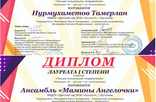 Поздравляем с победой наш ансамбль "Мамины ангелочки" (Кондратьева Екатерина, Богатова Валентина, Костина Арина, Хайбрахманова Карина, Пятова Ксения) и Нурмухаметова Тамерлана!