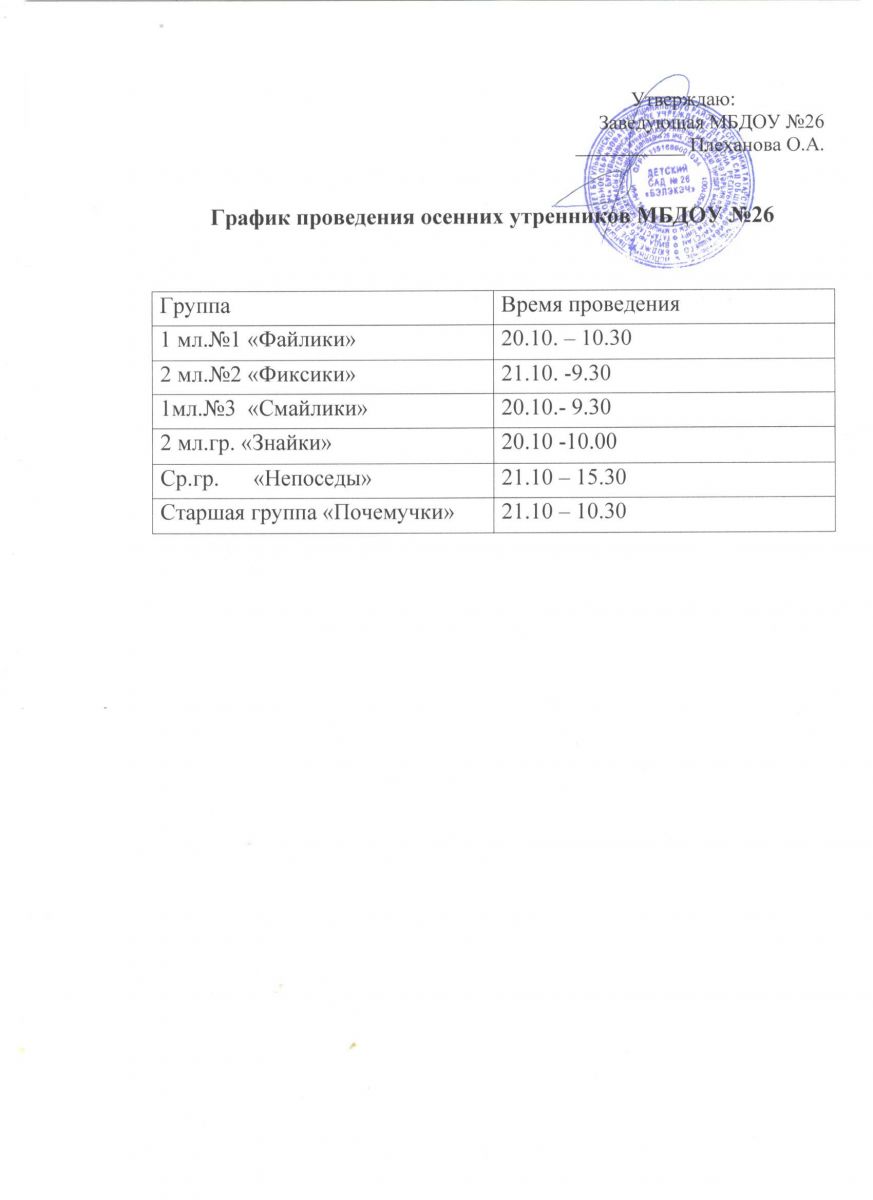 График осенних утренников