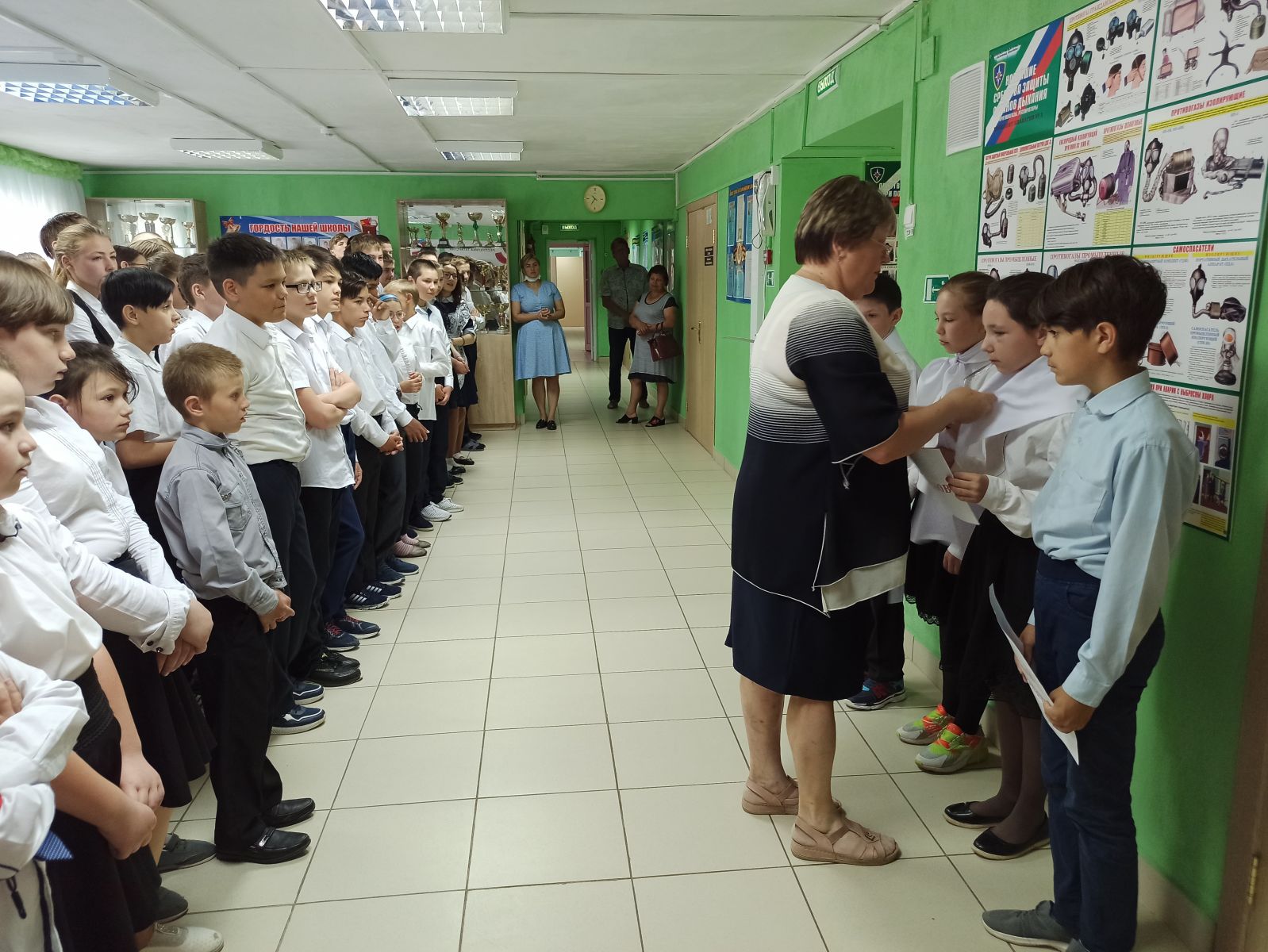 На линейке – ребята дали торжественное обещание быть верными, честными и справедливыми в рядах РДШ, оказывать всяческую помощь, приносить пользу своей семье, школе, району и России. Они получили значок с логотипом РДШ и галстуки детско-юношеской общественно-государственной организации.
