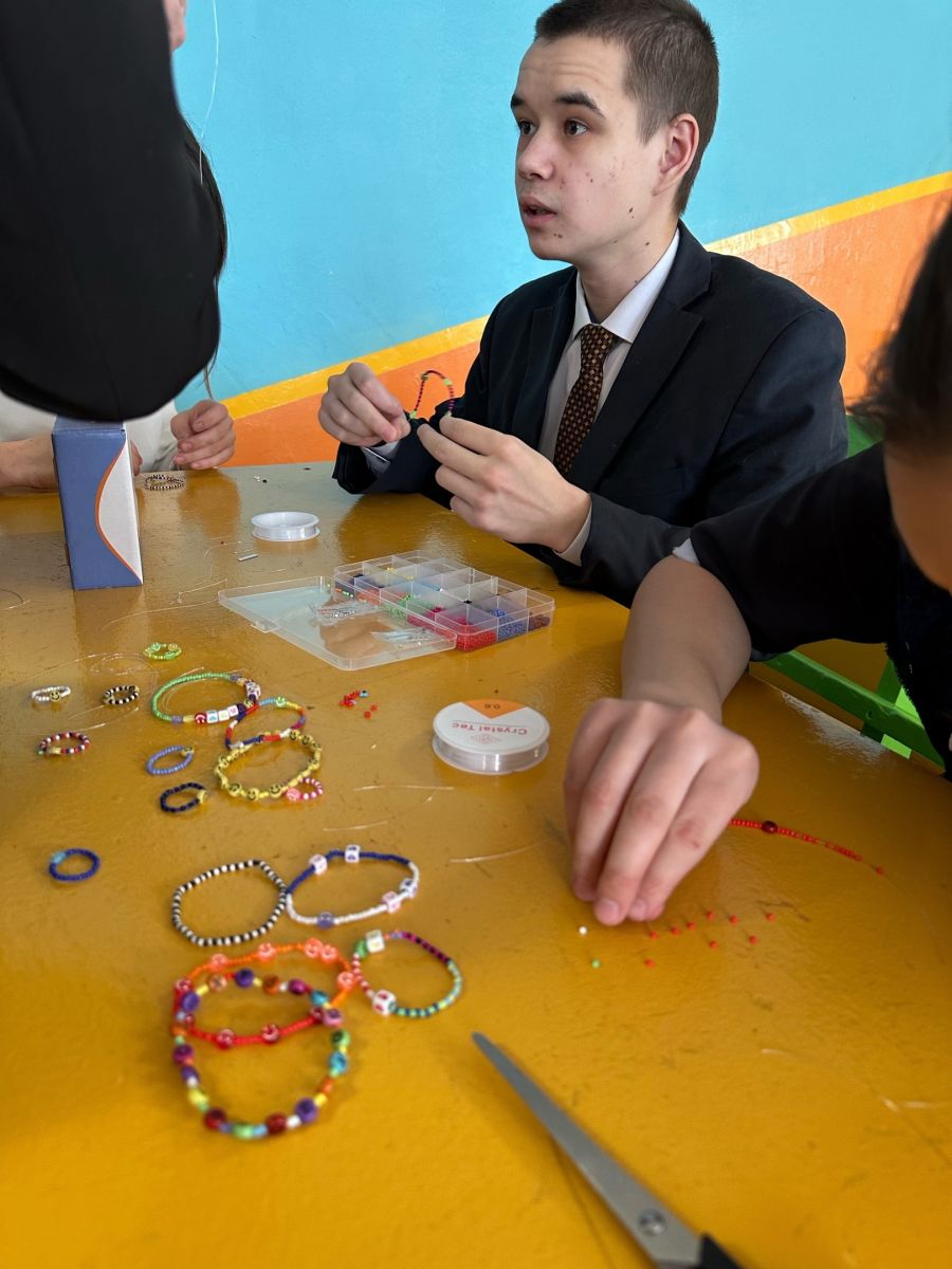 В преддверии школьной ярмарки актив школы - интерната и советник по воспитанию, Низамутдинова Н.В., организовали Мастер-класс по бисероплетению. Кто хоть раз видел процесс изготовления изделий из бисера, тот охотно подтвердит: бисероплетение завораживает. Видеть, как россыпь ярких бусин превращается в нечто воздушное, волшебное, неповторимое, чудесно и удивительно. Занятие бисероплетением не только формирует эстетический вкус, понятие прекрасного, но и черты характера, необходимые любому человеку. Это терпение, аккуратность, чувство меры, усидчивость, внимание, фантазию, чувство прекрасного, художественно-эстетический вкус, умение сочетать цвета. Воспитывает самостоятельность, трудолюбие, аккуратность. Все изделия, которые сегодня были уже готовы, отправляются на школьную ярмарку для реализации в поддержку участников СВО.