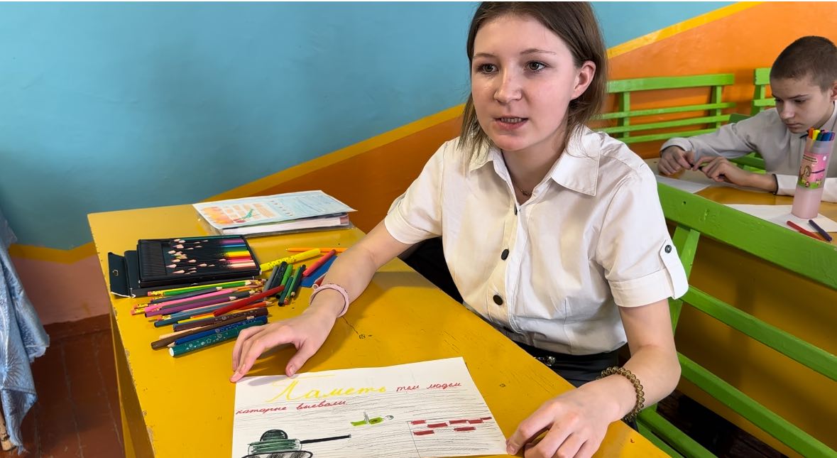 В нашей школе - интернате обучающиеся создали уголок памяти. В 6 классе проведено воспитательное мероприятие «Через музыку едины». Ребятам предлагалось прослушать музыкальное произведение "Симфония № 21 «Каддиш», Моисей Вайнберг". После прослушивания произведения, предлагалось обсудить их внутренние переживания, возникающие образы во время прослушивания, предложено изобразить их на бумаге. Далее обучающиеся озвучили свои восприятия от прослушивания симфонии. Харченко Данил рассказал стихотворение "Тёмный лес". Просмотрен фильм "Оккупация - Холокост". После просмотра приступили к обсуждению сюжета.