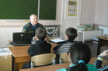 Встреча с начальником ОПППС с.Соколка Канищевым А.А. Был объявлен конкурс рисунков на тему: "Мы желаем жить в мире без пожаров"