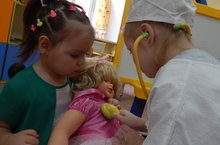 В рамках недели добра, ребята 1 младшей группы №2 АНО ОО "Прогимназия №14", продолжали знакомиться с профессией врача. Знакомство это проходило в ходе сюжетно- ролевой игры "Больница". Дошколята рассказали, что врачи оказывают помощь не только людям, но и животным, таких врачей называют ветеринарами, узнали о таком важном медицинском инструменте как: фонендоскоп, о его назначении. В процессе игры ребята выполняли роль врачей и пытались оказать помощь всем, кто к ним обращался: куму укольчик сделать, кому лапку перевязать, таблеточку выписать, накормить животных, которые захотели кушать.... Вот какие добрые юные "врачи."