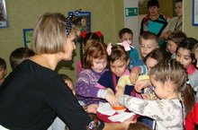 В этот день во всех возрастных группах были проведены тематические занятия, включающие конкурсы рисунков, беседы, рассматривание иллюстраций, решение проблемных ситуаций. Дети подготовительных групп выполняли в этот день роль волонтёров, собирая подписи, пожелания родителей и педагогов о мире, дружбе. Все эти добрые слова, написанные на бумажных ладошках дети выпустили в небо, надеясь, что их приветы разнесутся по свету и согреют чьи-то человеческие сердца. Самые маленькие воспитанники детского сада украсили "солнышко доброты" своими ладошками, а дети старшей и средней групп объединились в народных играх, узнавая о традициях и особенностях разных стран.