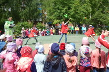 Организаторы праздничного мероприятия Кузнецова Н. А., Логинова И. Б, Казакова А. Ю, Мельникова Ю. Н. приготовили для ребят интересную программу: загадки, хороводные игры, веселые конкурсы, загадки, танцевальные номера. Сюрпризным моментом на мероприятии было появление сказочных персонажей: Лето, веселый клоун Кирюшка с волшебным цветком, Баба –яга, Айболит. Они веселили, смешили и развлекали детей на протяжении всего праздника.