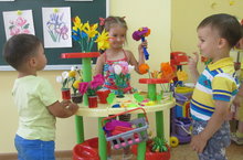 В группе №4 «Журавушки» прошла тематическая неделя посвященная цветам. Воспитатели уточнили и расширили представления детей о таких цветах: ромашка, василек, роза, незабудка, одуванчик. Дети сравнивали цветы по строению и величине, разукрашивали раскраски, трафареты «Цветы»; используя пластилин, семечки дыни и арбуза, создавали цветочные картины, которыми оформляли группу и настольные игры. С помощью родителей были приготовлены атрибуты к сюжетным играм: «Магазин цветов», «Бутик модных шляпок», «Автогараж» с поливальными машинами. Итогом недели стало игровое пособие для ребят «Цветок желаний», где дети выбирали игру по желанию. А приемную украсила творческая выставка поделок детей совместно с родителями «Цветочная фантазия».