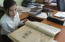 Главный редактор Исмагилова Юлия Ильдусовна, рассказала ребятам о том, что первым издателем газеты была купчиха, первая газета вышла в 1919 году, называлась она «Колхозник», затем «Ленинское знамя», позже «Бугульминская газета».