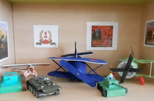 В рамках подготовки к празднованию 70 – летия Великой Победы в группе №7 АНО «Прогимназия № 14» оформлена выставка поделок "Боевая техника". На выставке представлены не только боевая техника, но и оружие, военные, фотографии дедушек времен Гражданской и Великой Отечественной войны.