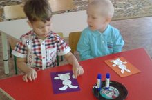В группе № 8 АНО «Прогимназия №14», под руководством воспитателя Шакировой Гульсиры Римовны дети, посещающие кружок «Твори, выдумывай, пробуй», выполнили аппликацию в нетрадиционном стиле – с использованием ватных дисков: друзей для зайчика Степашки, которому было грустно, от того, что Каркуша улетела и ему не с кем было играть. Ребята справились с заданием, очень аккуратно. А после того, как подсохли работы, каждый ребенок своему зайчику нарисовал глазки, носик, ротик.