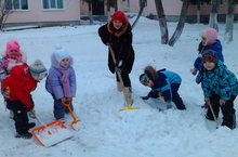 Чтобы дети не выросли пассивными, неумелыми, не боялись жизненных трудностей и бытовых проблем, постепенно воспитатели АНО "Прогимназия № 14" приучают дошкольников к труду. И детям это очень нравится. Весело и дружно ребята группы № 3 убирают снег на своем участке.