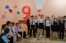 В канун 68 годовщины Победы была проведена конкурсная программа, среди школьников 1-4 классов с участием подготовительной группы №5. Ребята проникновенно и чувственно исполнили песни войны и победы, читали стихи, подготовили стенгазеты и рисунки о войне. По итогам конкурсной программы: