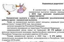 Министерство труда, занятости и социальной защиты Республики Татарстан (далее – Министерство) информирует, что с 1 октября 2020 года на Портале государственных и муниципальных услуг Республики Татарстан (далее – ПГМУ) https://uslugi.tatarstan.ru во вкладке «Услуги в электронном виде/Социальная защита (подача заявления на выплаты, субсидии)» реализован сервис подачи заявления на ежемесячную выплату, посредством которого родители могут подать заявление полностью в электронном виде. -