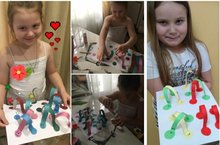 Сегодня ребята средней группы вспомнили стихотворение С.Михалкова "Котята". А затем сделали из картона таких же котят, придумали им имена, и связали- котятам свитерочки из ниточек. Ребята учились последовательно наматывать нитку в круговую. И вот что у них получилось.