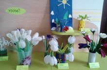 Дошколята ежедневно пополняют поделками коллекцию подснежников: из бумаги, пластиковых ложек, ватных дисков, ткани, пластиковых бутылок и пенопласта, используя бисероплетение….. -