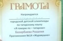 Поздравляем Базарбаеву Р. воспитанницу АНО ОО "Прогимназия №14" с победой в муниципальном конкурсе «Я говорю по - татарски». В МБДОУ №28 соревновались самые активные, коммуникабельные, творческие ребята. Поздравляем всех участников и победителей конкурса!!!!