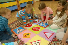 • цикл бесед «Всем ребятам нужно знать, как по улице шагать», «О чем нам говорит светофор», «Как правильно переходить улицу». В ходе беседы дети закрепили знания о дорожных знаках «Пешеходный переход», «Осторожно дети», «Остановка автобуса»,