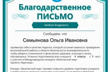 Ученики нашей школы приняли участие во Всероссийском конкурсе "Безопасный мир".По итогам конкурса были награждены дипломами.Конкурс «Безопасный мир» призывает всех ещё раз уделить внимание вопросу детской безопасности, а также найти и восполнить пробелы в знаниях и навыках ребят