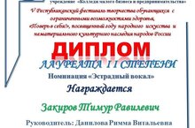 Закиров Тимур студент 124г группы принял участие в V Республиканском фестивале творчества обучающихся с ограниченными возможностями здоровья, "Поверь в себя"