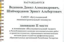 Студенты группы 116И Веденеев Данил и Шаймарданов Эрнест, под руководством преподавателя Садыковой А.А., стали призерами Республиканского конкурса исследовательских работ и проектов студентов с применением математических методов. Поздравляем и желаем дальнейших побед!