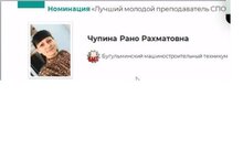 21 декабря завершился Всероссийский конкурс с участием стран СНГ «Лучший молодой преподаватель научно-образовательного кластера по подготовке кадров для нефтегазового комплекса Республики Татарстан». Наш техникум в номинации «Преподаватель СПО» представляла Чупина Рано Рахматовна. По итогам конкурса ей вручен сертификат на обучение в корпоративном университете ПАО «ТАТНЕФТЬ».