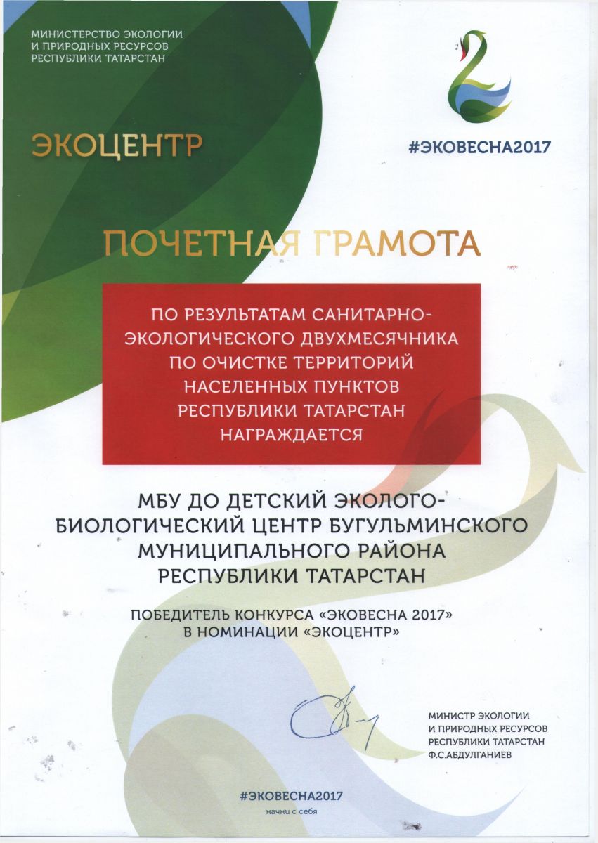 Муниципальное бюджетное образовательное учреждение дополнительного образования детский эколого-биологический центр Бугульминского муниципального района Республики Татарстан