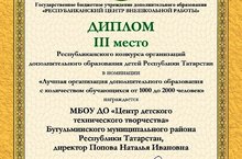 Центр детского технического творчества - ПРИЗЁР Республиканского конкурса, одно из лучших учреждений дополнительного образования Республики Татарстан!
