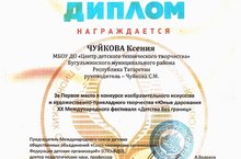 Дипломом за I место в Конкурсе «Юные дарования» XX Международного фестиваля «Детство без границ» награждена воспитанница МБОУ ДО ЦДТТ.