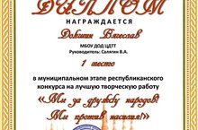 Муниципальный этап республиканского конкурса на лучшую творческую работу "Мы за дружбу народов! Мы против насилия!"