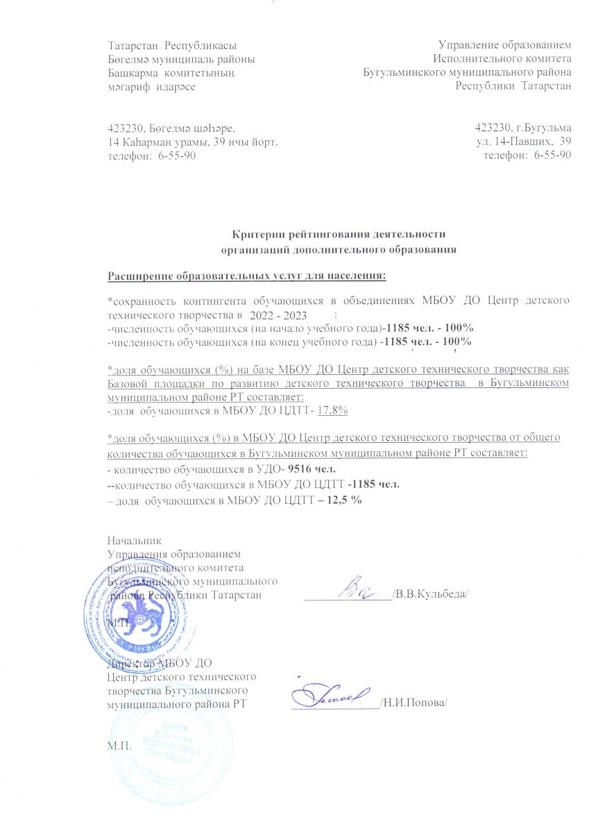 Муниципальное бюджетное образовательное учреждение дополнительного образования Центр детского технического творчества Бугульминского муниципального района Республики Татарстан