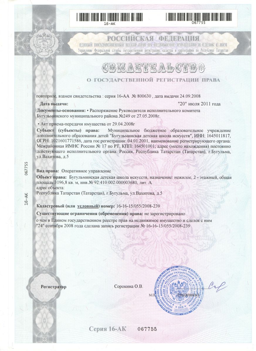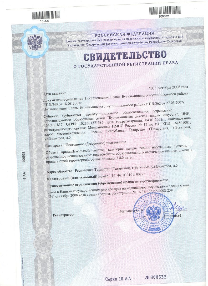 Св-во о Государственной регистрации права на имущество