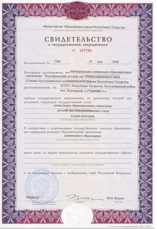 Свидетельство о государственной аккредитации
