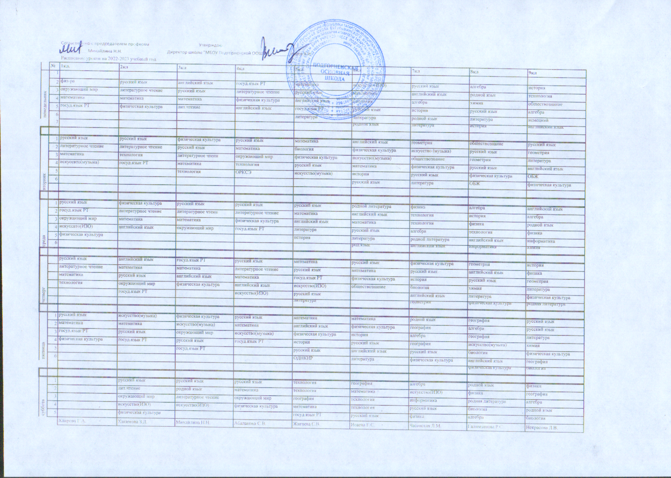 Расписание уроков на 2022-2023 учебный год.