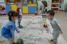 Физическое развитие. Игровое упражнение "Поймай мяч двумя руками" Подвижная игра "Помоги мышке собрать фрукты и овощи в мешочек".