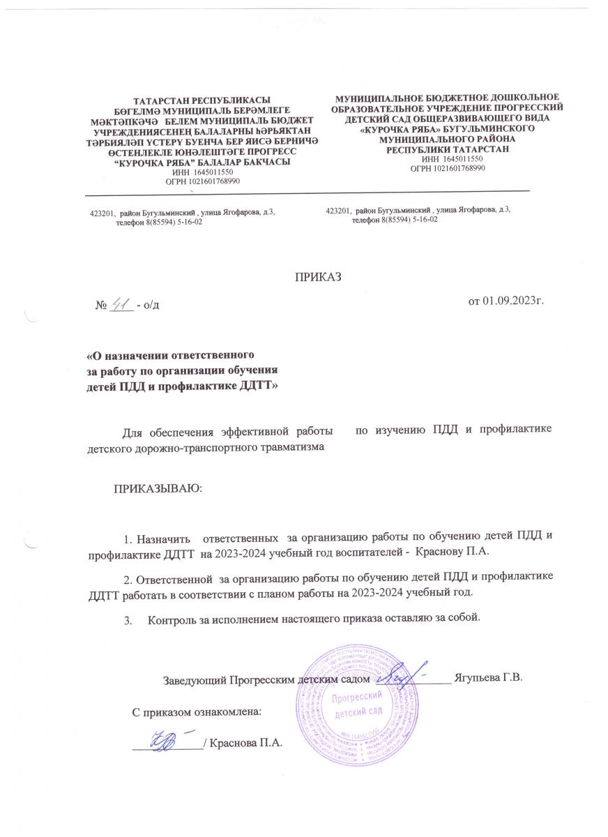 Муниципальное бюджетное дошкольное образовательное учреждение Прогресский детский сад общеразвивающего вида «Курочка ряба» Бугульминского муниципального района Республики Татарстан