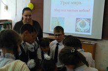 В школе состоялся тематический классный час, с презентацией, видеоматериалом и интерактивными беседами. Ребята вспомнили о трагедии, произошедшей в г.Беслане. Были проведены беседы о символе мира — голубе. Дети отгадывали загадки, вспоминали пословицы о мире, дружбе. Затем вырезали голубей и запустили в мирное небо.