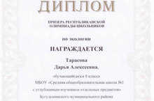 Ученица 8 класса стала призером (учитель Сахибгареева Л.Ф.).