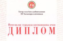20-23 нче апрель көннәрендә Казан шәһәрендә Татар теле һәм әдәбияты буенча III Халыкара олимпиада узды. Бу олимпиадада мәктәбебезнең 9 нчы сыйныф укучысы Миңнегулова Айгөл дә катнашты. Айгөлне олимпиадада уңышлы катнашуы белән чын күңелдән котлыйбыз һәм иҗади уңышлар теләп калабыз.