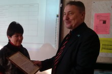Сегодня на педагогическом совете в МБОУ СОШ №1 председатель Совета ветеранов "Боевое братство" Л.Л. Прошин вручил Благодарность Кабинета Министров РТ и Координационного совета по вопросам ветеранов боевых действий в Республике Афганистан учителю истории Ираевой Венере Самиуллаевне и преподавателю ОБЖ и ОВС Ридзель Михаилу Ивановичу за большой вклад в деле военно-патриотического воспитания молодежи и активную работу в военно-патриотическом клубе "Память" с семьями погибших при исполнении воинского долга и служебных обязанностей.