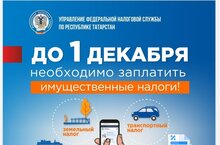 УФНС России по Республике Татарстан в связи с началом массового направления налоговых уведомлений в 2021 году и приближением срока уплаты физическими лицами имущественных налогов за 2020г., напоминает о том, что до 1 декабря необходимо заплатить имущественные налоги.