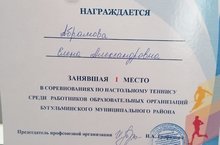 27 марта прошла спартакиада среди работников образоваательных организаций Бугульминского муниипального района. Цель ее проведения – пропаганда здорового образа жизни, развитие массовых видов спорта среди работников образовательных учреждений, вовлечение учителей к физической культуры и спорту, развитие и укрепление дружбы между коллективами. В программу спартакиады вошли плавание, шашки, шахматы и настольный теннис. Команда педагогов нашей школы была представлена во всех 4 видах состязаний. В заплыве свободным стилем на 50 м. соревновались заместитель директора по учебной работе Фонакова Л.Р. и заместитель директора по воспитательной работе Чернуха А.С. На шахматной доске сражалась учитель начальных классов Конакова И.А., а на доске по шашкам - инженер ЭВТ Кудашкин С.В. В соревнованиях на личное первенство по настольному теннису не было равных учителю физической культуры Абрамовой Елене Александровне, она стала абсолютным победителем в этом виде. Поздравляем всю команду и желаем дальнейших успехов!