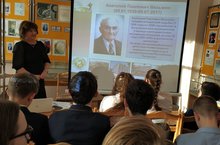 Учащиеся 7б класса 28 января свой классный час провели в городском краеведческом музее. Они посетили мероприятие, приуроченное 100-летию Татарской АССР. В ходе цикла исторических сведений о почетных гражданах нашего города «Твои люди, Бугульма!» вниманию семиклассников было представлено сообщение о Вязьмине Анатолие Павловиче, который в течение 42 лет возглавлял Бугульминское медицинское училище. Директор БМУ Кузнецова М.М., которая в течение долгих лет работала с ним, с увлечением рассказала об этом замечательном человеке, прекрасном учителе и руководителе.