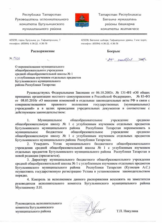 Муниципальное бюджетное общеобразовательное учреждение средняя общеобразовательная школа №1 с углубленным изучением отдельных предметов Бугульминского муниципального района РТ/ Татарстан Республикасы Бөгелмә муниципаль районы гомуми белем бирүче муниципаль бюджет учреждениесе аерым фәннәрне тирәнтен өйрәтүче 1нче урта гомуми белем мәктәбе