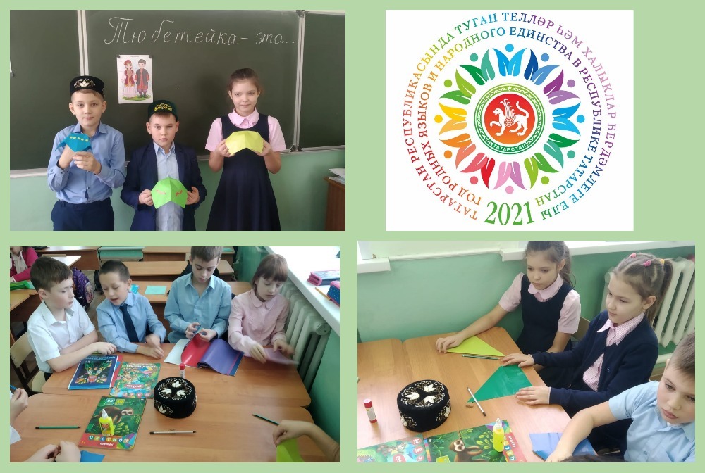 Сегодня в 3 классе прошло мероприятие, приуроченное к "Году Родных языков и народного единства в РТ". Ребята познакомились с татарским головным убором "Тюбетейка" и проявили свои умения в её изготовлении из бумаги с помощью техники "Оригами" -
