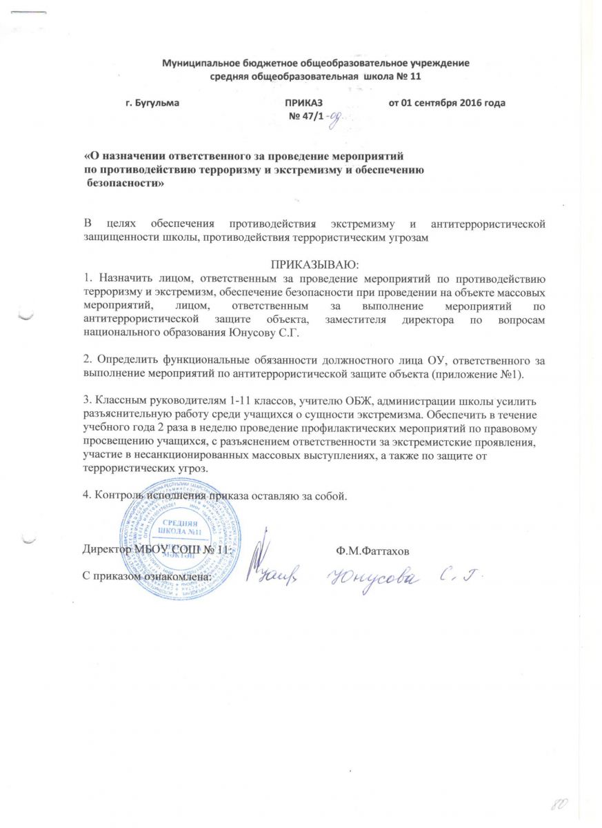 Приказ о назначении ответственного по антитеррору