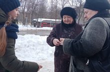 Отряд " Тимуровцы" школы №12 , поздравили женщин микрорайона с наступающим праздником 8 марта