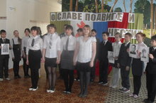 2 марта в школе прошел военно-патриотической смотр строя и песни, посвященный празднованию 70-летия Победы в Великой Отечественной войне. В этом мероприятии приняли участие учащиеся с 2 по 9 класс. Среди начальной школы 1 место занял 4Б класс, ребята показали не только правильность маршировки и исполнения песни, но была продумана и единая форма. Среди среднего звена 1 место занял 5А класс. Такие мероприятия в нашей школе проходят традиционно, каждый год выступления учащихся становятся все лучше и интереснее.