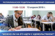 13 апреля 2018 года с 11.00 до 12.30 состоится пятое заседание Республиканского родительского интернет-собрания на тему: «Можно ли на экзамены идти с удовольствием?».На повестке дня планируется рассмотрение эффективных технологий интеллектуальной и психологической подготовки выпускников к мероприятиям по итоговой аттестации, а также освещение роли родителей и педагогов в успешном преодолении этого непростого периода в жизни подростков.Онлайн-трансляция собрания организуется на сайте Казанского инновационного университета имени В.Г.Тимирясова по адресу: http://киу.рф/.Вопросы принимаются по адресу электронной почты: roditelirt@mail.ru/. -