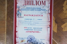 16 февраля ученики нашей школы приняли активное участие в муниципальной ХХI научно-практической конференции «Открытие» и показали достойный результат поздравляем ученицу 8А класса Барашекову Елену, занявшую 1 место в секции «Здоровье» (учитель Козина Е.М.), , ученицу 9А класса Сивачеву Марию, занявшую 2 место в секции «Технология» (учитель Егорова Т.В.), ученицу 11 класса Гарееву Зарину, занявшую 2 место в секции «Татарская филология»,(учитель Хайдарова Н.М.), ученицу 7Б класса Фролову Светлану, занявшую 3 место в секции «История» (учитель Рубцова Ю.С.), ученицу 8А класса Барашекову Елену, занявшую 3 место в секции «Химия и экология» (учитель Азимова Р.С.). МОЛОДЦЫ!!!