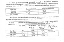 О проведении занятий в условиях низкой температуры наружного воздуха 13.01.2021