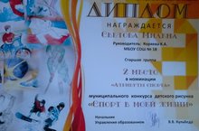 Ученицу 8 класса Светову Милену,занявшую 2 место в муниципальном конкурсе детского рисунков " Спорт в моей жизни".